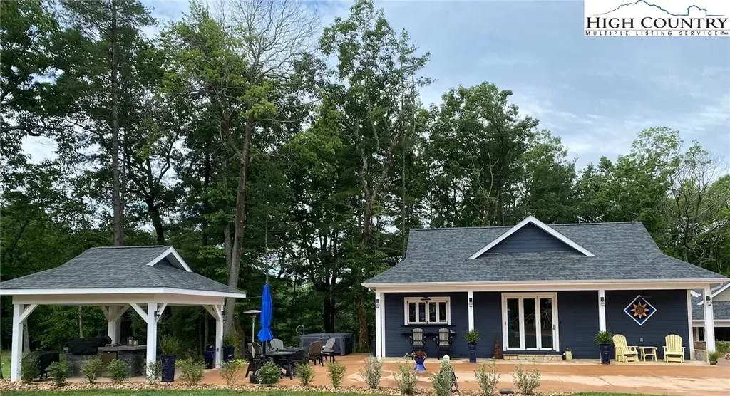 The Village of Laurel Branch a gated Class A Motorcoach resort located at Olde Beau Resort & Golf Club in the Blue Ridge mountains of NC. Incredible and awaiting your arrival, the only way to describe this property offering a beautiful coach house for entertaining and overnight guests. This 803 +/- sq. ft cottage is beautifully finished with a vaulted ceiling, is completely furnished with a large kitchen appointed with custom cabinetry & pullouts, live edge leather finish granite, beautiful appliances, to include a countertop nugget ice maker, & pot filler. The dining room offers beautiful views to the golf course to accommodate all for dinner. The living room offers a beautiful soaring stone fireplace, all lighting on dimmers, motorized blinds throughout. The bath offers a beautiful large tile shower, and incredible vanity. A spacious laundry & storage area can accommodate your golf cart and is easily accessed. The outdoor area is relaxing and entertainment central with a hot tub lit with led lighting, outdoor covered kitchen with a Bull Grill with infrared, side burner, outdoor fridge, bar area with composite bar stools, multiple seating areas with composite seating by Four Season Furniture & Luxcraft, fire pit, beautiful landscape lighting, mature landscape, and exterior storage cabinets. The .24 acre lot with coach pad in place and ready to use with full hookups is ready for your Coach to include water, sewer, 50 amp electrical service, and a bypass for water allowing you to use the Coach area or Cottage independently. Enjoy your coach in a beautiful setting with all the amenities of Olde Beau a gated community and surrounding area to include Full Service Clubhouse Dining, Proshop, 18 Hole Golf Course, Practice Facilities, Pool, Gym, Pickleball Courts, Hiking Trails, Dog Park, Ponds for fishing, & Child’s Playground. Numerous vineyards, Blue Ridge Pkwy., Stone Mountain State Park, & New River are just outside your door. A must see for your getaway!