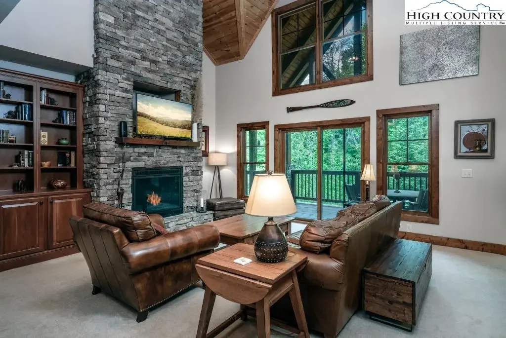 Welcome to luxury living in The Lodges at Elkmont! Easy access from the main road but once you step inside, you are greeted with sounds from the stream and peacefulness. This exquisite condominium, boasting three spacious bedrooms and three beautiful baths, is where comfort meets elegance. Immerse yourself in an open floor plan accentuated by vaulted and trey ceilings, creating an inviting atmosphere throughout. A well-appointed kitchen awaits the culinary enthusiast, complete with a large pantry and seamless flow into the great room centered around a grand fireplace. Location is key, and this property is just minutes from downtown Banner Elk, the Banner Elk Winery and a host of activities including the local farmers market, weekly music in the park, fine dining, theater and ski resorts. Spend tranquil evenings on the covered deck, where walls of windows blur the line between comfort of indoors and the beauty of nature. The main level gracefully accommodates the primary and second bedrooms, offering convenience and ample storage, complemented by top-end furnishings included in the sale. Upstairs, discover a cozy second guest suite and loft area with a convertible sofa, fantastic for visiting family or friends. The expansive covered back porch, provides beautiful views and sounds from the meandering mountain stream, great for those peaceful retreat moments. The seller is the second owner of the condo and has not ever been rented. Don’t miss the opportunity to own this mountain sanctuary. Schedule your visit today! There is a 7 night minimum for rentals. Fully furnished. Easy to show!
