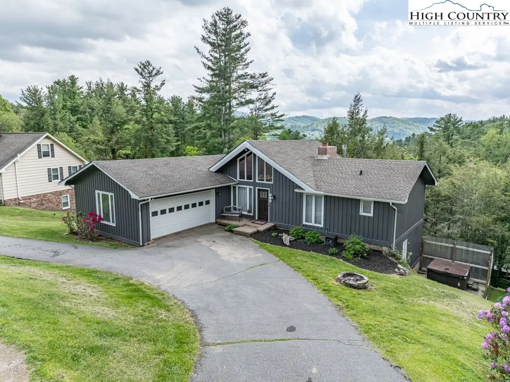 Located in Boone’s desirable Blairmont subdivision, this 4BR/3.5BA home offers space, comfort, and convenience just minutes to Watauga Medical Center and Appalachian State University. Set on a gently sloping lot with a circle drive, the home features multiple decks, a wood-floor garage, and a freshly painted exterior. The main level showcases a vaulted great room with exposed beams, tongue-and-groove ceiling, stone gas log fireplace with wooden hearth, built-ins, & access to the porch offering mountain views. Hardwood and tile floors flow throughout. The kitchen offers stainless appliances, tile backsplash, walk-in pantry, hood vent, and adjacent dining area. The spacious primary suite features tongue-and-groove ceilings,a propane fireplace floor-switched propane fireplace, primary bath LED inlay shower lighting, quartz-top vanities, and. A deep coat closet and a half bath round out the main floor. The lower level includes 3 additional bedrooms, laundry, a den, wood stove with brick surround and access to the hot tub area. Other features include- an attic fan in the garage, concrete walk-out utility room under the garage with utility sink, and ample storage. Seller is open to selling furnished with minor exclusions. Enjoy mountain living in a well-established neighborhood with quick access to Boone’s best amenities.
