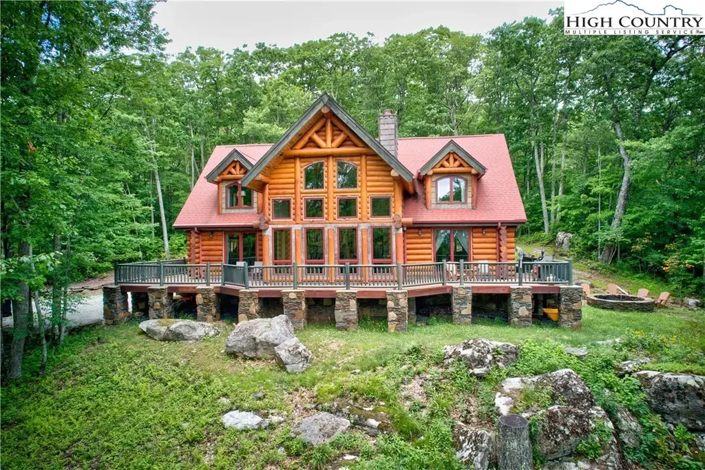 REDUCED! Big Elk Lodge. Prime location & VIEW in The Lodges at Eagles Nest. Walking distance to the amenities of the Great Camp, the ball fields,new DG & NEW EPIC STEAK HOUSE. NOT FAR FROM FRONT GATE! 1 LEVEL LIVING! Being sold fully furnished & turn-key, this home is located at 4,500 feet elevation and enjoys long range views and 180 degree southern exposure. The house was constructed of hand hewn logs reclaimed from the Snake River in Oregon and has beautiful hardwood floors throughout. Soaring, tongue and groove ceilings in the Great Room with beams and a floor to ceiling stacked stone wood burning fireplace. There is a wall of windows to take in the views and natural light. The Chef's kitchen with beautiful cabinetry, upgraded granite countertops and stainless steel appliances is a dream to work in with its special gas range. The Huge Primary bedroom has direct access to the expansive deck. The Primary bathroom has dual vanities and a large glass walk in shower. Upstairs, there is a usable loft for reading or other use that is overlooking the great room. There are also two very spacious guest rooms with each with their own high end full bath. To enjoy the out doors and cool mountain air there is a large wrap around deck. There is also a large fire pit by the stone outcropping on the side of the house for cozy campfires with family and friends. Come see this true log cabin on one of the most sought after communities in the mountains. THIS HOUSE SLEEPS MANY! Recently re-stained! Sold subject to the NC Vacation Rental Act. Showings must be scheduled around rentals. The rental calendar is available on Blue Ridge Rentals website. Big Elk Lodge. 3,000 acre development reaching 5,200 feet, Eagles Nest offers panoramic views,waterfalls,streams, access to the Elk River. Amenities include NEW EPIC STEAKHOUSE,ATV & hiking trails,Winery,Great Camp,River Club,Gym,Disk Golf/Pickle Ball/Tennis/Rope Course,Dog Park,Outdoor Amphitheater,2 Helipads,Cigar bar,Dollar General &more.