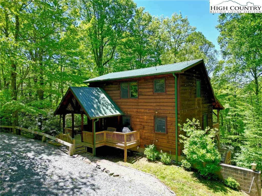 Spacious yet snug and cozy log cabin in Blowing Rock offers a highly usable floor plan with large inviting decks, rhododendron stair railings, 2 stone fireplaces, T and G ceiling, oak floors, 3 good sized bedrooms and baths, one on each floor, loft overlooking the Great Room, Family room on the lower level; oversized laundry with storage space and storage closet. A bedroom and bath on each level gives everyone privacy and space. The family room downstairs with a stone fireplace is ideal for watching TV, playing games or having a second living space. The loft upstairs is currently used for overflow sleeping, but could be used in a variety of ways. Dual vanities in each of the bathrooms. Offered fully furnished. A hot tub on the lower deck and a firepit in the private back yard encourage enjoyment of the outside space. This is a terrific mountain vacation getaway, investment property or full time residence with easy, close access to Blowing Rock, the Blue Ridge Parkway and all the adventures that are waiting to be enjoyed in the High Country.