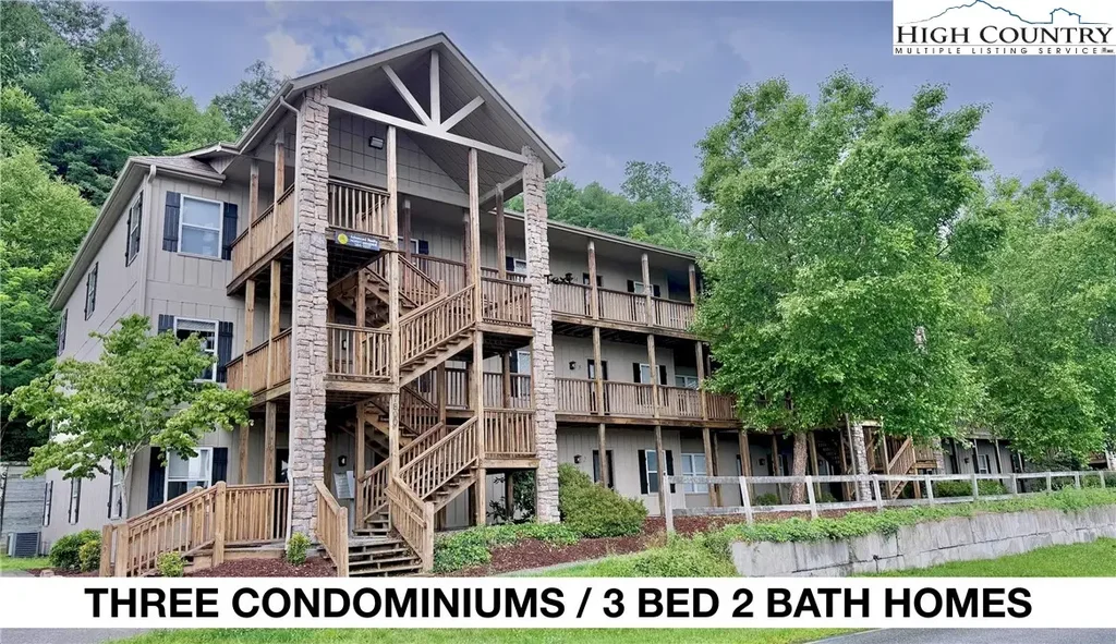 Investment Opportunity! Three-Unit Condo Package – Prime Location with Mountain Views Don't miss this rare chance to own a package of three 3-bedroom, 2-bathroom condos in the heart of the High Country! Each bright and spacious unit boasts beautiful mountain views over Boone and a thoughtful, open-concept layout designed for both comfort and convenience. Features include a generous primary en-suite, two additional bedrooms, a large separate dining area, and a cozy balcony—perfect for taking in the serene surroundings. The living room flows seamlessly into a well-appointed kitchen, ideal for entertaining or relaxing at home. Located just minutes from shopping, dining, Appalachian State University, and CCC&TI campus, with easy access to all the amenities and outdoor adventures the High Country has to offer. These condos are also conveniently located near an AppalCART stop for quick and easy transportation. Condos 8 and 13 are currently rented through July 29, 2026, providing immediate rental income. Condo 17 is vacant and easy to show—ideal for owner occupancy, or leasing. HOA fee is $264 per condo. Property taxes #8 $1,244.66 #13 $1,135.63. Investment opportunity with location, views, and rental potential—schedule your showing today!