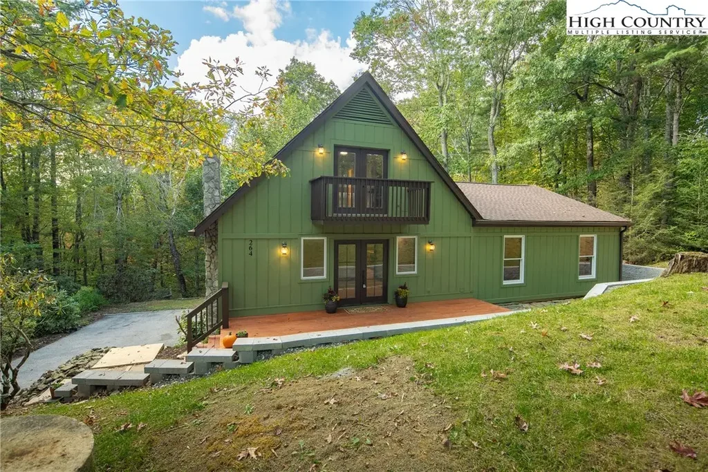 Completely remodeled, beautiful mountain home in a wooded, peaceful setting only 8 minutes to Boone. This 3 bedroom/2.5 bath home is move-in ready and completely renovated. The main level includes a large living room, brand new huge walk-in pantry/laundry room combo, master bedroom and master bath, dining room, full bath, and 2 bonus rooms that both have closets. Upstairs you will find 2 additional bedrooms and a half bath along with a private balcony off one of these bedrooms. Updates include: New kitchen with new stainless steel appliances, granite countertops, and new fixtures. New flooring throughout: laminate flooring on the main floor, new carpet upstairs, and new tile in the master bath. New interior and exterior paint and stain, new front deck. New vanities and fixtures in 2 bathrooms, and new toilets in all 3 bathrooms. New entry door. Primary Bathroom is completely redone with walk-in shower, private toilet and beautiful vanity. Huge deck on 2 sides of home that is partially coverer, in addition to the brand new front deck allows for plenty of entertaining and really adds the living space. This home is a perfect primary home or it would make an excellent short term or long term rental investment. Unfinished basement with single car garage allows for plenty of storage or future expansion or use as a workshop. Woodstove in basement provides additional heat source. Shed/outbuilding allows for even more storage. This home is tucked beneath the Blue Ridge Parkway, within walking distance of the Mountain to Sea Trail and central to all that the High County has to offer.