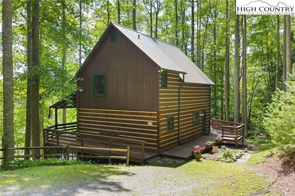 Log Cabin Retreat ideally situated between Boone and Blowing Rock! This beautifully crafted, fully-furnished log cabin offers a blend of convenience, and mountain charm! Tucked on a large, shady yard, this home provides cool, comfortable summers and is just minutes from all the High Country has to offer. Step onto the expansive wrap-around porch, thoughtfully designed with both covered and uncovered areas for year-round enjoyment. Whether you're hosting friends or enjoying a quiet evening by the fire, this space is excellent for entertaining. The current owners have loved gathering here before App State football games for what they lovingly call “Cabin-gating” a unique and memorable take on tailgating! Inside, the home boasts a light-toned wood interior that enhances the bright, open atmosphere. The spacious great room seamlessly connects to the dining area and chef’s kitchen, featuring live-edge granite countertops, a gas range, and ample cabinetry. The main level also includes the primary bedroom and laundry area, allowing for easy one-level living with only one step into the home for easy accessibility. Upstairs offers a versatile, open loft for additional guests, an office, game area, or creative space, as well as a second bedroom and full bath. The finished lower level includes a third bedroom and bath, a game area complete with a pool table, and a wet bar that opens to an additional deck and out to the fire pit and gently sloping yard. Designed for those who love to entertain or simply spread out, this home provides excellent separation of space with a bedroom and bathroom on each floor. Whether you're seeking a full-time residence, a short-term rental investment, or a mountain getaway, this property offers the ultimate log cabin experience in one of the High Country's most desirable locations. An additional lot is available and has an expired septic permit and well water rights. Fully furnished and ready for your enjoyment! Don't miss your chance to own this inviting and versatile mountain retreat! There is another listing, MLS 256983, to convey the additional lot. This listing is for the lot the home is on only. Please see other listing for details. Upstairs and primary bedrooms were designed to be heated by the monitor heater when built. Sellers will add baseboard heat prior to closing or offer the buyer a credit of $2,750 to do so.
